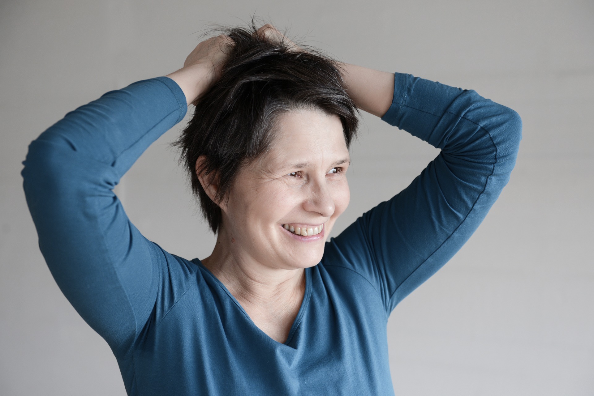 Her work also draws from sociological and societal thinking, as well as from a long-term engagement with somatic movement practices. Her first encounter with Contact Improvisation was in the late 1980s. Contact Improvisation played a significant role in her training as a professional dancer and artist, and has continued to influence her dance teaching over the following decades. CI echoes in many ways in both her artistic work and movement practice.