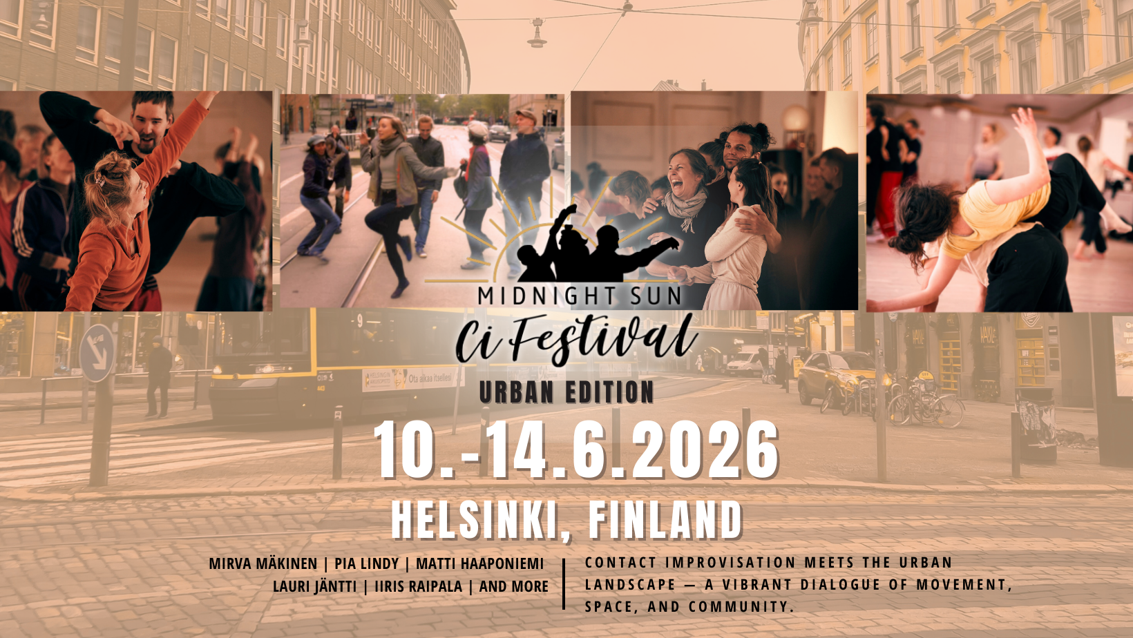 Join us for an unforgettable summer of Contact Improvisation in Helsinki, Finland! A special edition of Midnight Sun Festival brings Contact Improvisation into the city — dancing in studios and beyond, also in shared urban space.
